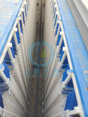 A型(xing)斜板實(shi)現了水(shui)(shui)流(liu)沿水(shui)(shui)平方向流(liu)動,沉泥沿豎(shu)直(zhi)方向降落,分(fen)離效率(lv)高、不會(hui)出(chu)現磯花(hua)上浮,水(shui)(shui)流(liu)短路(lu)現象(xiang),采(cai)用前花(hua)墻配(pei)(pei)水(shui)(shui),后(hou)花(hua)墻收水(shui)(shui)的(de)方式,避免因配(pei)(pei)水(shui)(shui)收水(shui)(shui)不均(jun)而造(zao)成的(de)短路(lu)現象(xiang)發生,增強了運行的(de)穩定性,實(shi)現了高效的(de)沉淀。