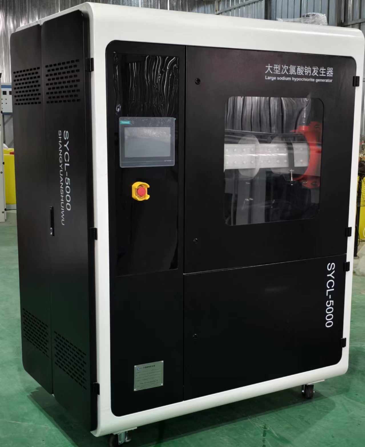 次(ci)氯(lv)(lv)酸鈉(na)是強氧(yang)化(hua)劑(ji)和消毒劑(ji),通過取(qu)源(yuan)于食鹽,經無隔(ge)膜(mo)電解而發生,更為(wei)環保(bao)健康。為(wei)確(que)保(bao)次(ci)氯(lv)(lv)酸鈉(na)質地新鮮和有(you)較(jiao)高的(de)活性,保(bao)證消毒效果,次(ci)氯(lv)(lv)酸鈉(na)消毒設備裝置一邊發生,一邊將發生的(de)次(ci)氯(lv)(lv)酸鈉(na)投(tou)加使用,與氯(lv)(lv)和氯(lv)(lv)的(de)化(hua)合物相比,具(ju)有(you)相同的(de)氧(yang)化(hua)性和消毒作用。